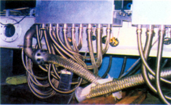 在泵或压缩机与阀门、仪器仪表所构成的输送液、气介质的管道系统中,常因振动损坏仪器仪表,缩短元器件的使用寿命,影响系统的正常工作,还因振动产生的噪音严重危害操作者的健康。所以在泵的进出口安装一节泵连软管可减小、吸收管系统的振动和噪音,同时还能补偿一定的位移,保护了系统正常工作,静化工作环境,并消除了以往采用的橡胶软接容易老化,耐温性能差等常见病。